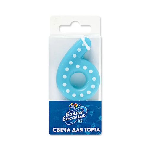 Свеча Цифра, 6 Белые точки, Голубой, 3*4,5 + 1,5 см, 1 шт. с держат., 803156