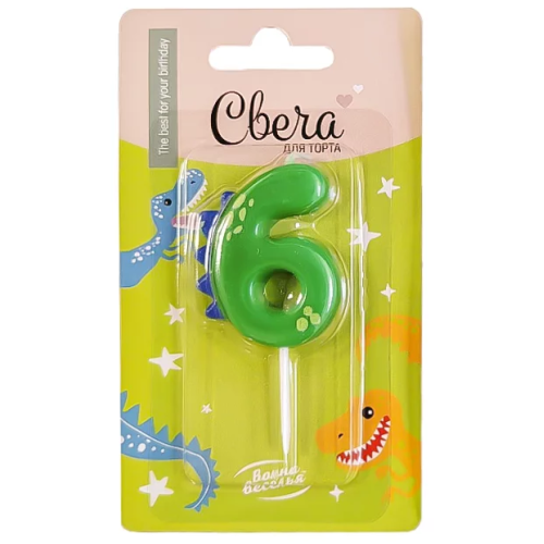 Свеча Цифра, 6 Динозаврик, 3,5*4,5 + 2,5 см, 1 шт. с держат., 639276