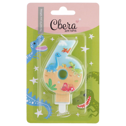 Свеча Цифра, 6 Динозаврики, 9 см, 1 шт. с держат., 622996