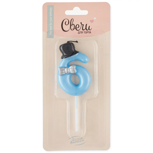 Свеча Цифра, 6 Джентльмен, 3,5*6 + 4,5 см, 1 шт. с держат., 803006