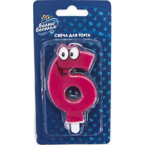 Свеча Цифра, 6 Глазки, Розовый, 7,5 см, 1 шт. с держат., 803126