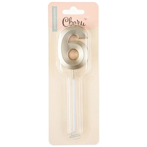 Свеча Цифра, 6 Грани, на шпажке, Белое золото, Металлик, 3,5*5 + 7 см, 1 шт. с держат., 802986