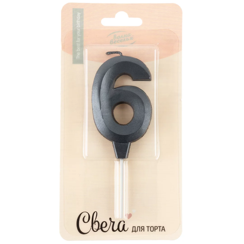 Свеча Цифра, 6 Грани, на шпажке, Мокрый асфальт, Металлик, 3,5*6,5 + 3,5 см, 1 шт. с держат., 3026
