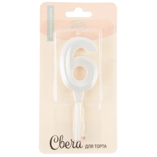 Свеча Цифра, 6 Грани, на шпажке, Жемчужный, Перламутр, 3,5*6,5 + 3,5 см, 1 шт. с держат., 3046