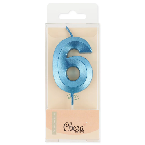 Свеча Цифра, 6 Грани, Синий, Металлик, 4,2*6 + 4,5 см, 1 шт. с держат., 803186