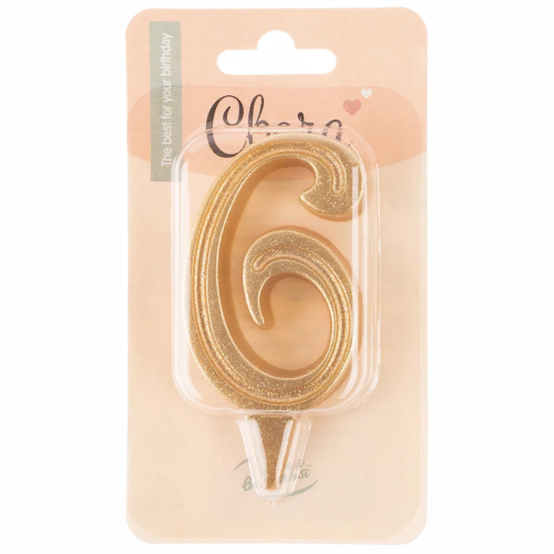 Свеча Цифра, 6 Грация, Золото, с блестками, 7 см, 1 шт., 2031