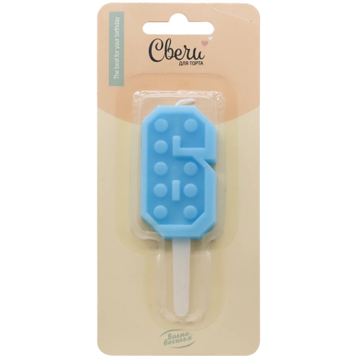 Свеча Цифра, 6 Конструктор, Голубой, 3,3*6,5 + 3 см, 1 шт. с держат., 802886