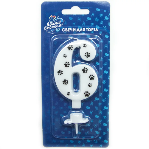 Свеча Цифра, 6 Лапки, 8 см, 1 шт. с держат., 132506
