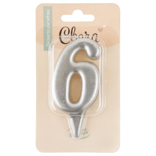 Свеча Цифра, 6 Овал, Серебро, Металлик, 7 см, 1 шт., 1562