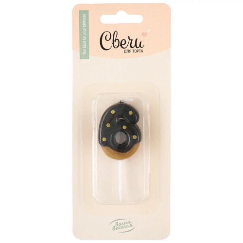 Свеча Цифра, 6 Пончик, Шоколадная глазурь, 3,5*4 + 3 см, 1 шт. с держат., 802866