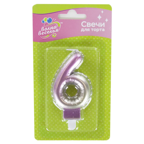 Свеча Цифра, 6, Розовый, Градиент, 7,5 см, 1 шт. с держат., 622976