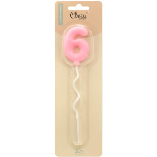 Свеча Цифра, 6 Воздушная серия, Розовый, 6 + 11 см, 1 шт. с держат., 802896