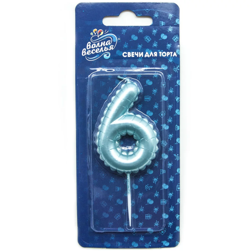 Свеча Цифра, 6 Воздушный шарик, Голубой, Перламутр, 5,8 см, 1 шт. с держат., 127406