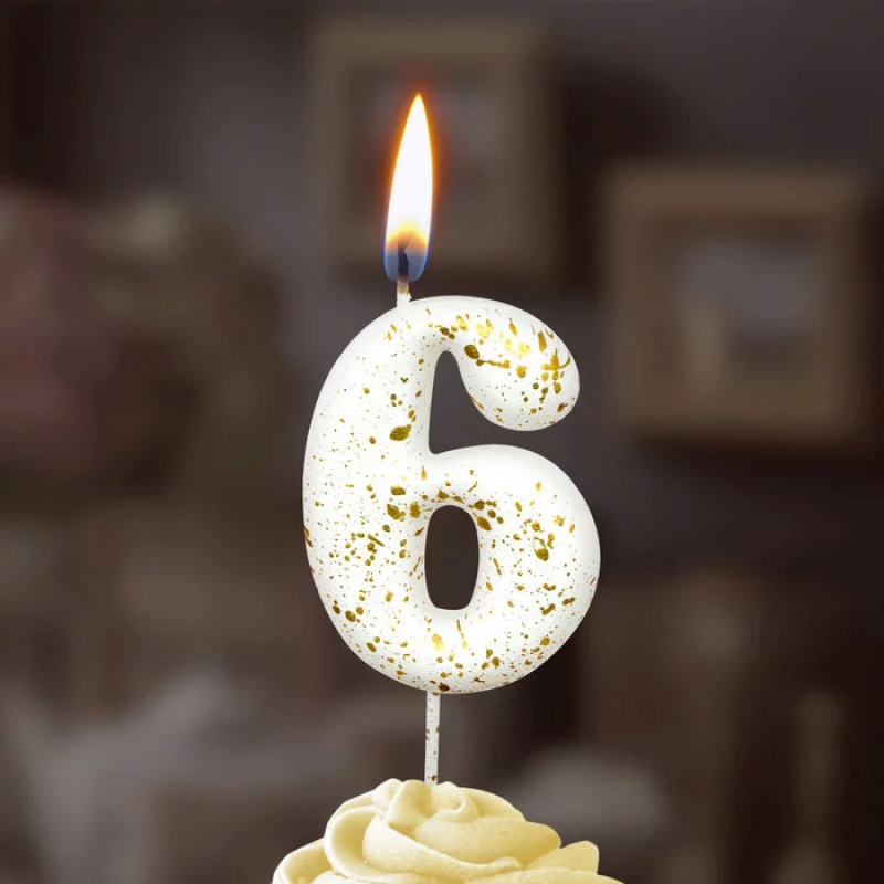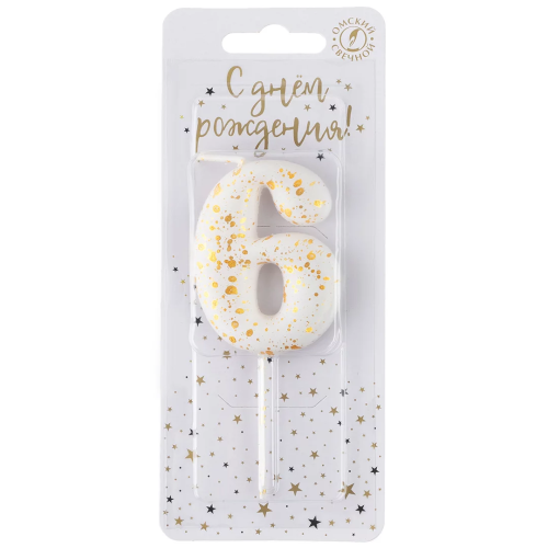 Свеча Цифра, 6 Золотые брызги, на шпажке, Белый, Металлик, 4,3 + 5,2 см, 1 шт. с держат., 5646