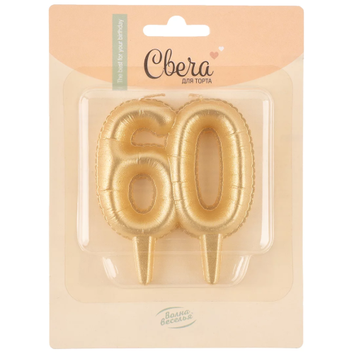 Свеча Цифра, 60 Юбилейные шарики, Золото, 8 см, 1 шт., 2128