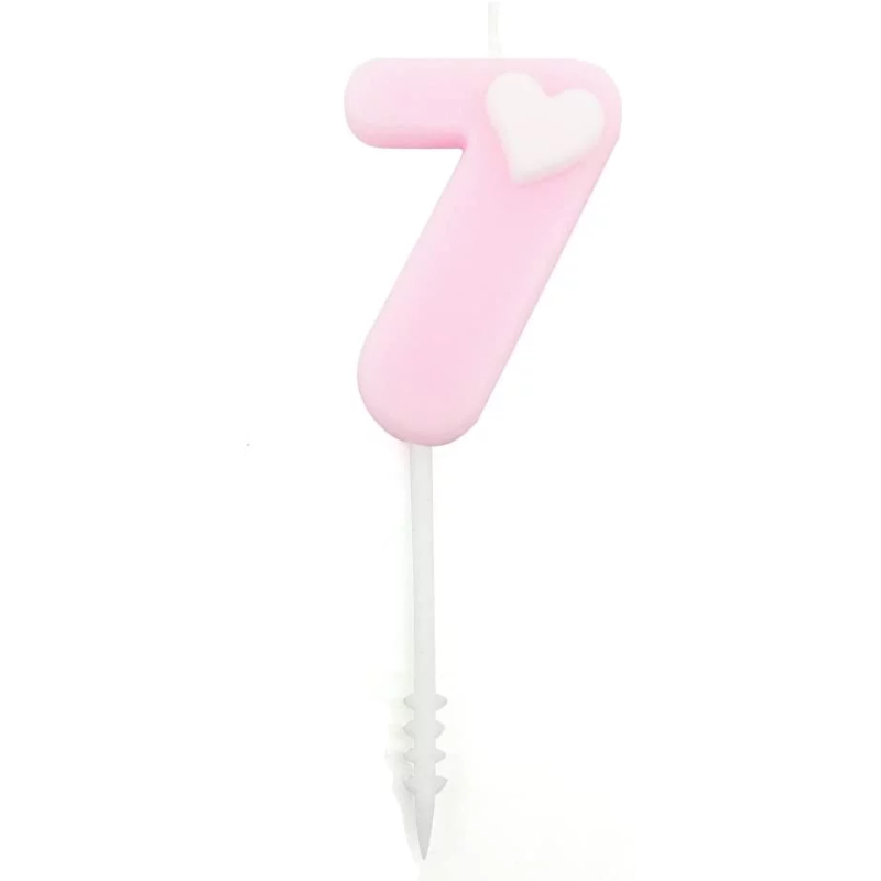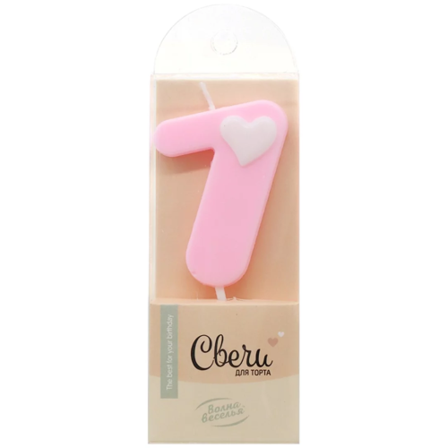 Свеча Цифра, 7 Белое сердечко, на шпажке, Розовый, 4,5 + 4 см, 1 шт. с держат., 802837