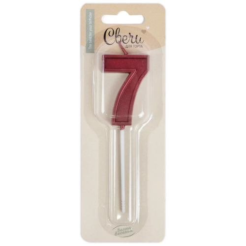Свеча Цифра, 7 Чистая линия, на шпажке, Красный, 4,7*6,7 + 7 см, 1 шт. с держат., 802807