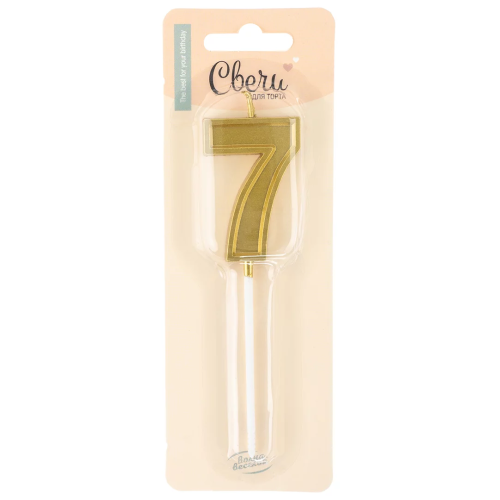 Свеча Цифра, 7 Чистая линия, на шпажке, Золото, 4,7*6,7 + 7 см, 1 шт. с держат., 803277