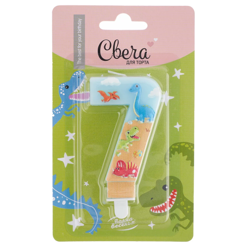 Свеча Цифра, 7 Динозаврики, 9 см, 1 шт. с держат., 622997