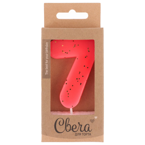 Свеча Цифра, 7 ЭКО, Неон, Ярко-розовый, с блестками, 4*6 + 3 см, 1 шт. с держат., 803217