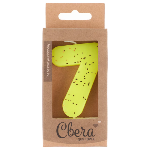 Свеча Цифра, 7 ЭКО, Неон, Желтый, с блестками, 4*6 + 3 см, 1 шт. с держат., 803227