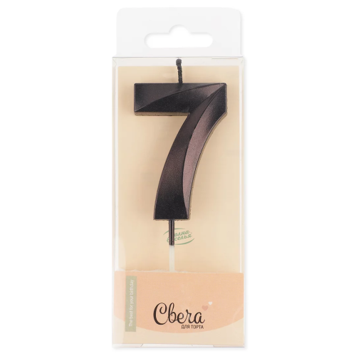 Свеча Цифра, 7 Грани, Черный, Металлик, 4,2*6 + 4,5 см, 1 шт. с держат., 803177