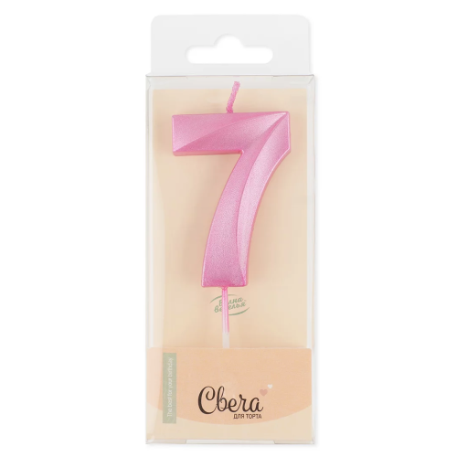 Свеча Цифра, 7 Грани, Розовый, Перламутр, 4,2*6 + 4,5 см, 1 шт. с держат., 802767