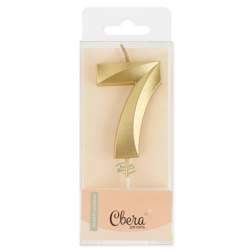 Свеча Цифра, 7 Грани, Золото, Металлик, 4,2*6 + 4,5 см, 1 шт. с держат., 803167