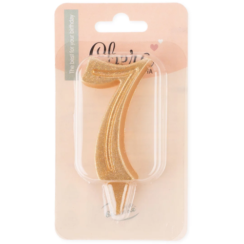 Свеча Цифра, 7 Грация, Золото, с блестками, 7 см, 1 шт., 2032