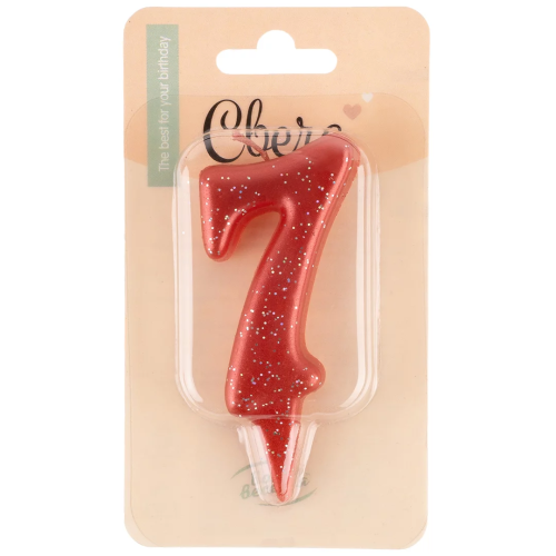 Свеча Цифра, 7 Овал, Красный, с блестками, 4*8 см, 1 шт., 1493