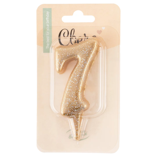 Свеча Цифра, 7 Овал, Золото, с блестками, 7 см, 1 шт., 1604