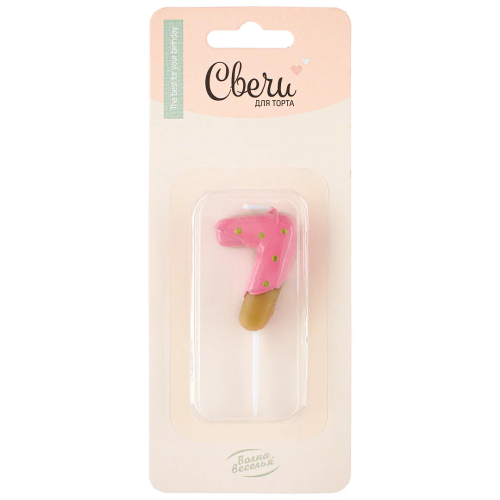 Свеча Цифра, 7 Пончик, Клубничная глазурь, 2,5*4 + 3 см, 1 шт. с держат., 802857