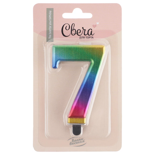 Свеча Цифра, 7, Радужный, Градиент, 8 см, 1 шт. с держат., 622077
