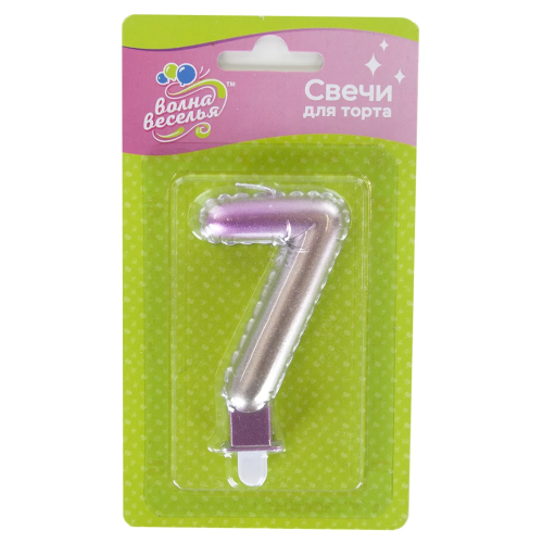 Свеча Цифра, 7, Розовый, Градиент, 7,5 см, 1 шт. с держат., 622977