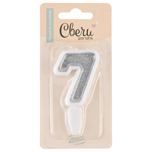 Свеча Цифра, 7, Серебро, с блестками, 5 см, 1 шт. с держат., 130127