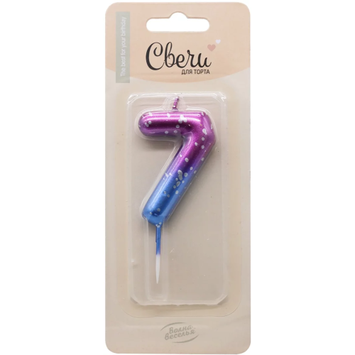 Свеча Цифра, 7 Сияющий космос, на шпажке, Градиент, 6 + 3 см, 1 шт. с держат., 802907