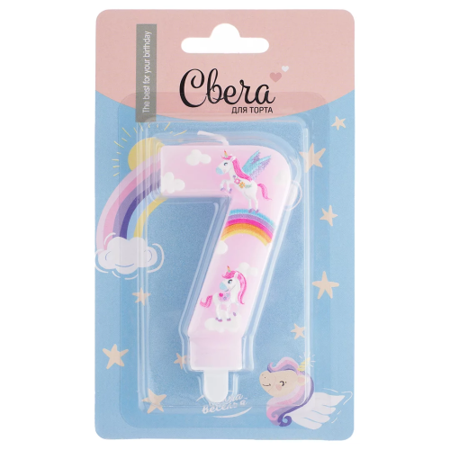 Свеча Цифра, 7 Волшебные единороги, Розовый, 9 см, 1 шт. с держат., 622987