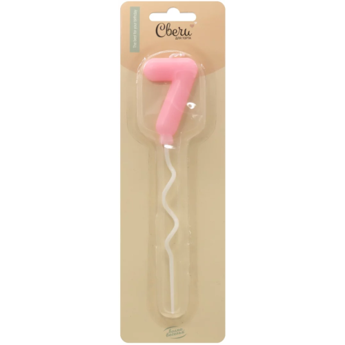 Свеча Цифра, 7 Воздушная серия, Розовый, 6 + 11 см, 1 шт. с держат., 802897