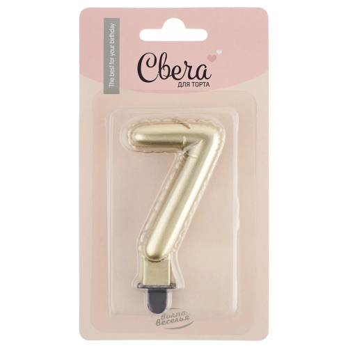 Свеча Цифра, 7 Воздушный шарик, Золото, Металлик, 5*7 + 1 см, 1 шт. с держат., 622957