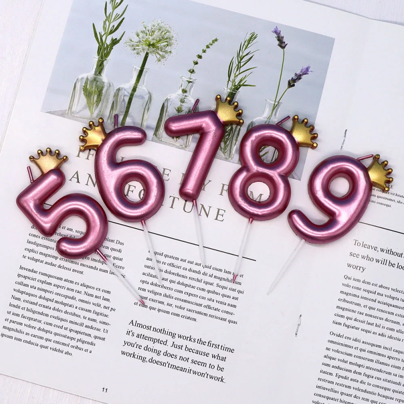 | Линейка | Свеча Цифра, Золотая корона, Розовый |