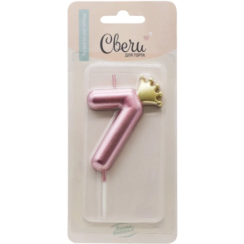 Свеча Цифра, 7 Золотая корона, на шпажке, Розовый, Металлик, 4,5*7 + 3,5 см, 1 шт. с держат., 802817