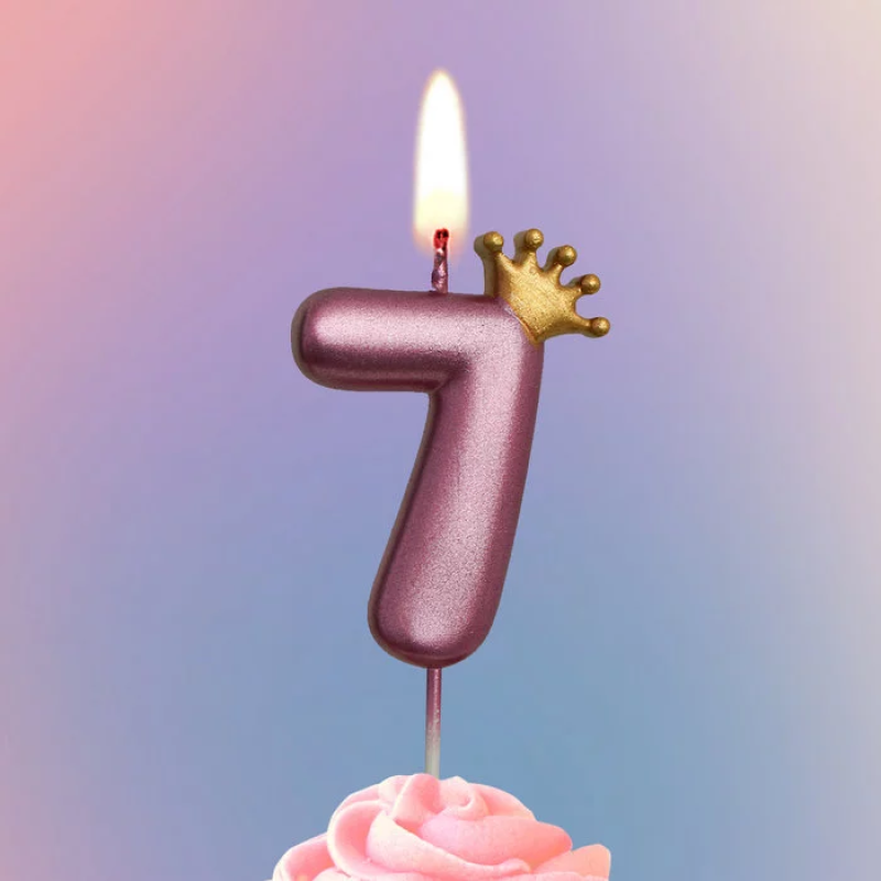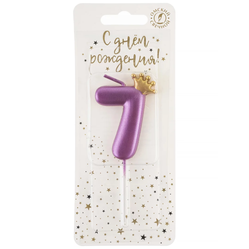Свеча Цифра, 7 Золотая корона, на шпажке, Ярко-розовый, Металлик, 4*5,5 + 4 см, 1 шт. с держат., 4777
