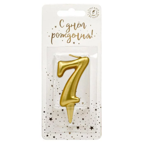 Свеча Цифра, 7, Золото, 6 см, 1 шт., 3087