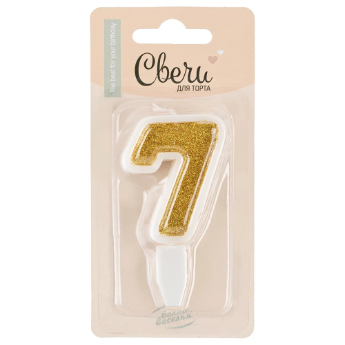 Свеча Цифра, 7, Золото, с блестками, 5 см, 1 шт. с держат., 130117