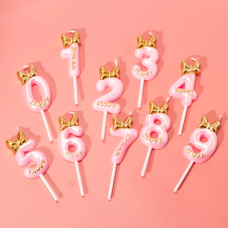 | Линейка | Свеча Цифра, Золотой бант, Розовый |