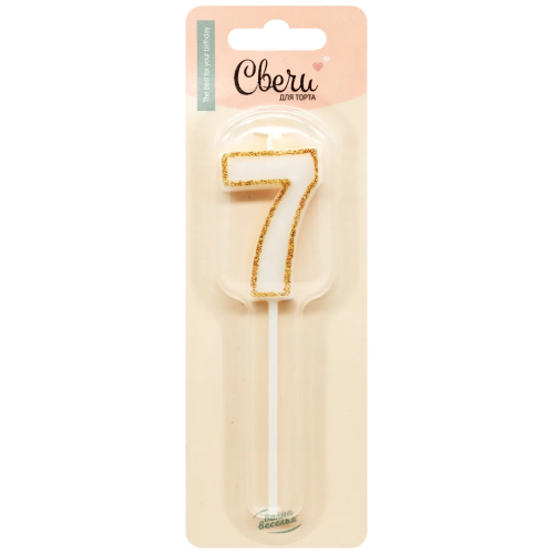 Свеча Цифра, 7 Золотой кант, на шпажке, Белый, с блестками, 4,5*5 + 7 см, 1 шт. с держат., 803087