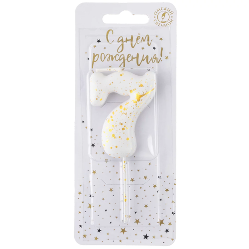 Свеча Цифра, 7 Золотые брызги, на шпажке, Белый, Металлик, 4,3 + 5,2 см, 1 шт. с держат., 5647
