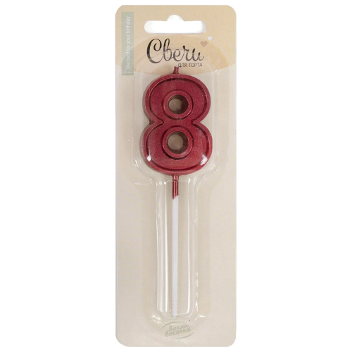 Свеча Цифра, 8 Чистая линия, на шпажке, Красный, 4,7*6,7 + 7 см, 1 шт. с держат., 802808