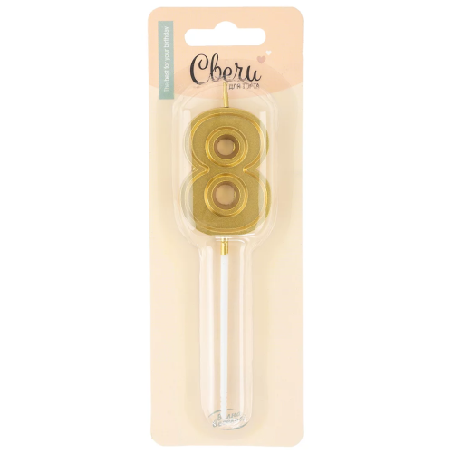 Свеча Цифра, 8 Чистая линия, на шпажке, Золото, 4,7*6,7 + 7 см, 1 шт. с держат., 803278