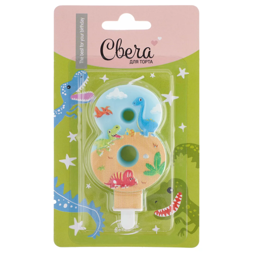 Свеча Цифра, 8 Динозаврики, 9 см, 1 шт. с держат., 622998